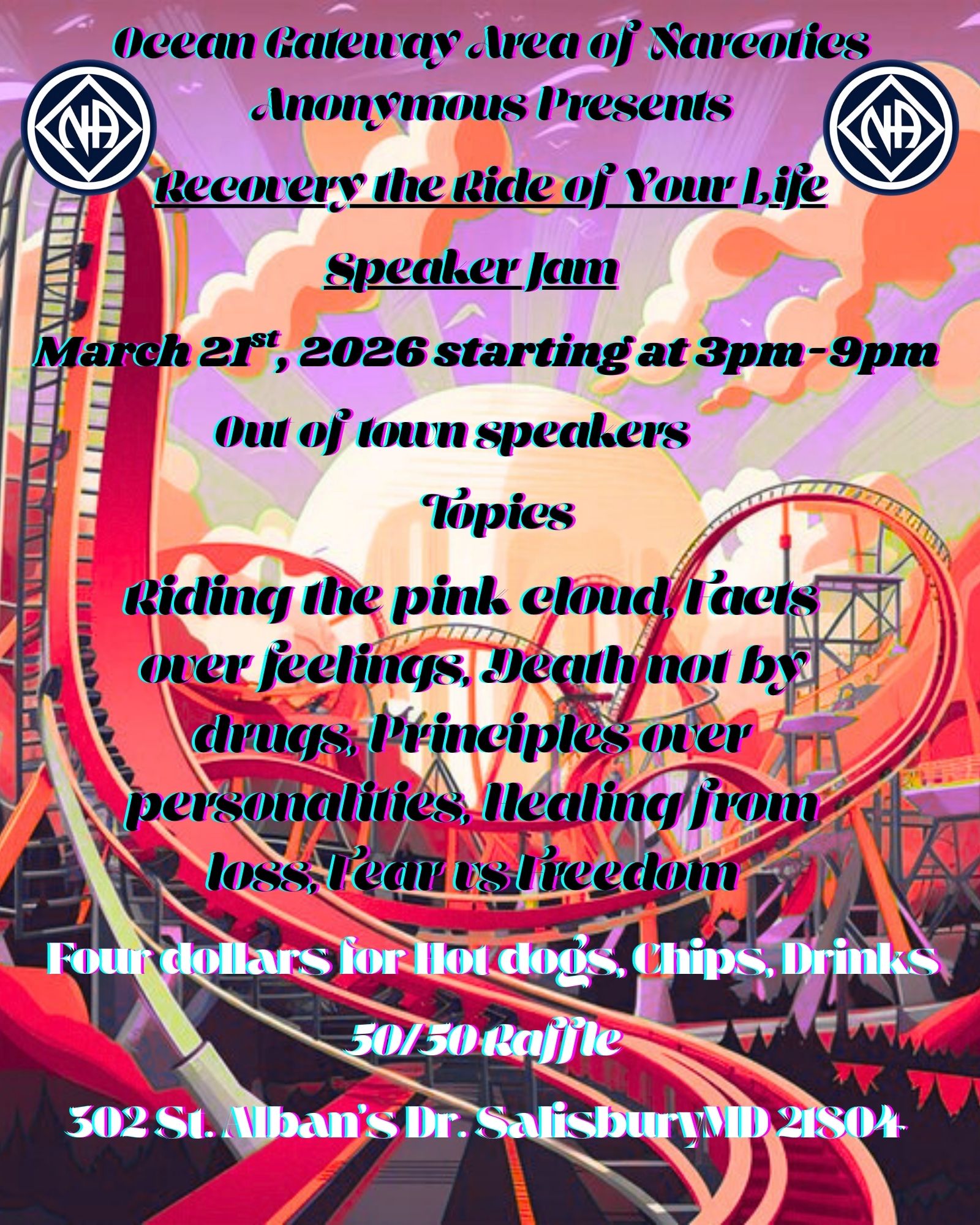 Step’n into recovery Tuesday 7:00 pm – 8:00 pm Recovery Resource Center 726 South Salisbury Boulevard, Suite E, Salisbury, Maryland, 21804.